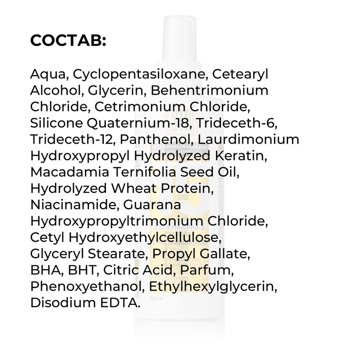 Состав: aqua, Cyclopentasiloxane, Cetearyl Alcohol, Glycerin, Behentrimonium Сhloride, Cetrimonium Chloride, Silicone Quaternium-18, Trideceth-6,