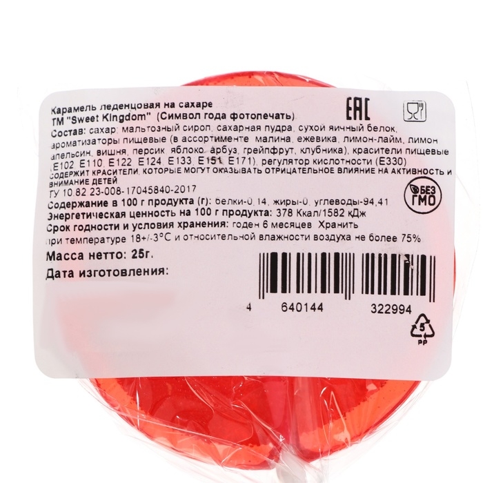 Карамель леденцовая "Символ года", с фотопечатью, МИКС, 25 г