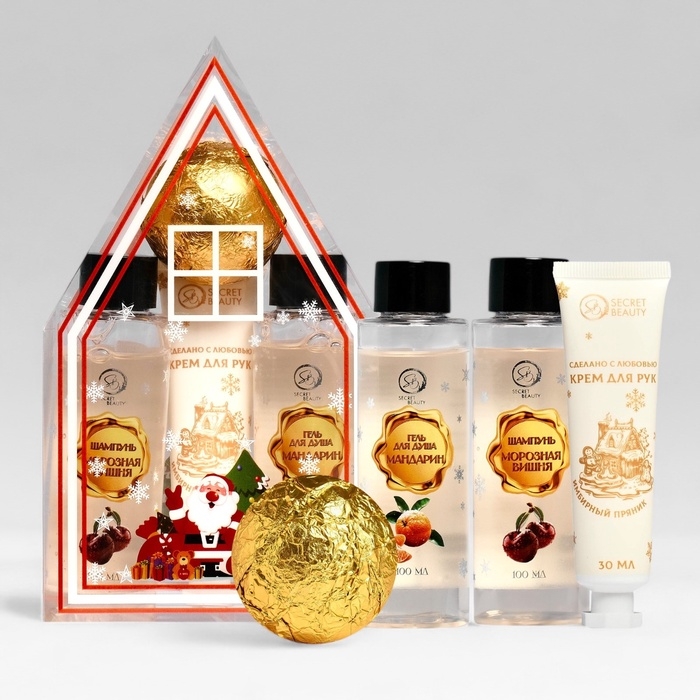 Новогодний подарочный набор косметики «Мастерская Деда Мороза» для душа и ванны, золотая серия