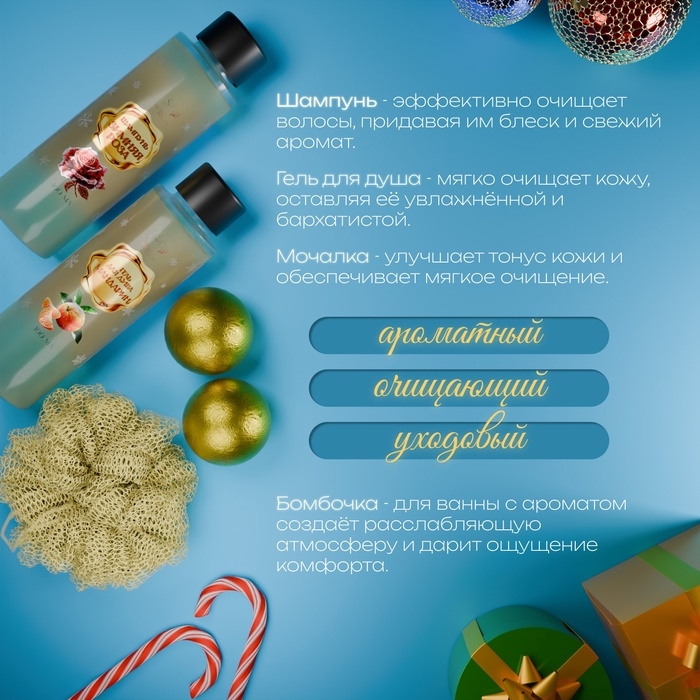 Новогодний набор — это идеальное сочетание продуктов для полноценного ухода за телом, которые дарят ощущение роскоши и заботы. Он идеально подойдёт как подарок на Новый год, который подчеркнёт ваше внимание и любовь к близким.