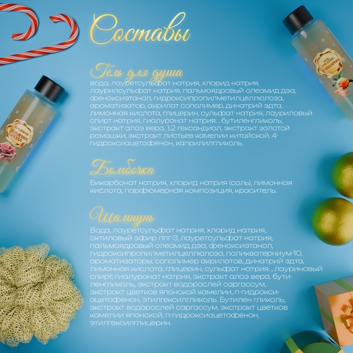 Новогодний подарочный набор косметики «Новогодние забавы» для душа и ванны, золотая серия