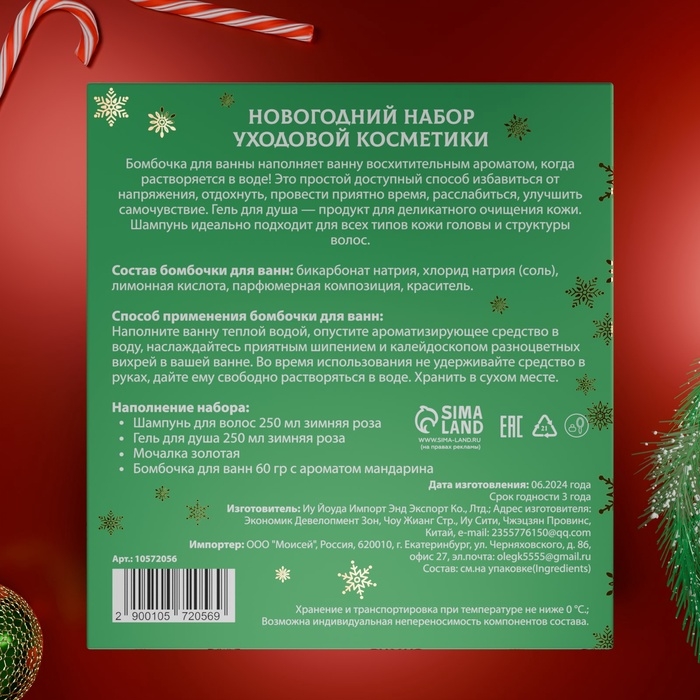 Новогодний подарочный набор косметики «Снежное царство», с ароматом розы и корицы. Зеленая серия