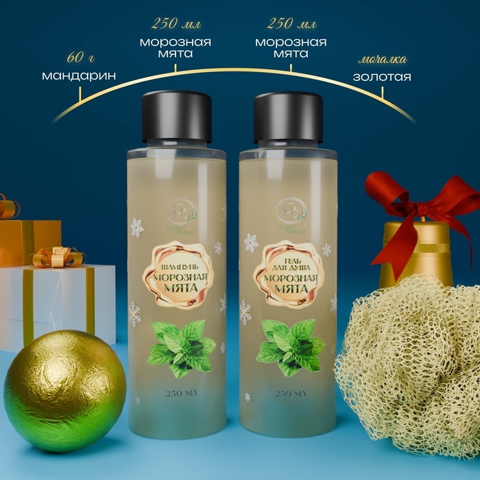 - Гель для душа 250 мл "Морозная мята" — его нежная текстура мягко очищает кожу, создавая приятные ощущения свежести и комфорта. Ароматный шлейф геля наполняет душу ощущением праздника, а кожа остаётся увлажнённой и бархатистой на ощупь.