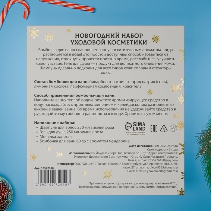 Новогодний подарочный набор косметики «Снежное царство», с ароматом розы и корицы. Золотая серия