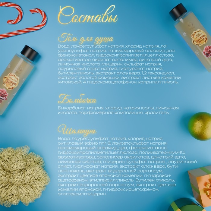 - Гель для душа 250 мл "Зимняя роза" — его нежная текстура мягко очищает кожу, создавая приятные ощущения свежести и комфорта. Ароматный шлейф геля наполняет душу ощущением праздника, а кожа остаётся увлажнённой и бархатистой на ощупь.