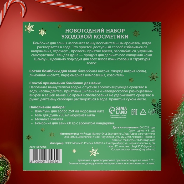 Новогодний подарочный набор косметики «Снежное царство», с ароматом мяты и корицы. Зеленая серия