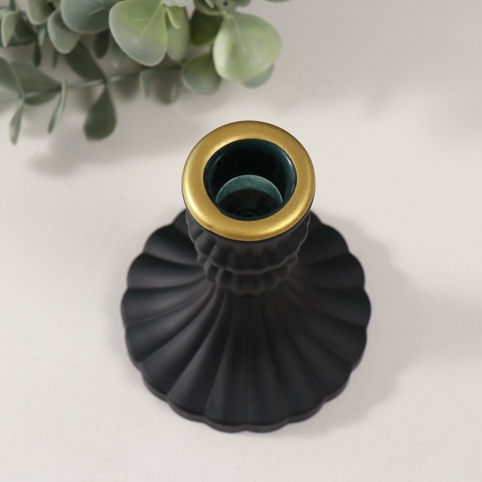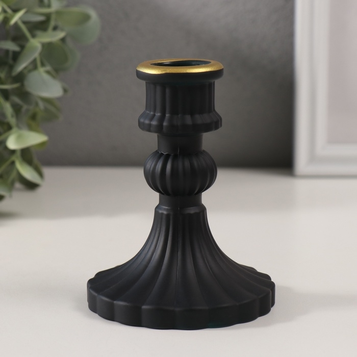 Подсвечник стекло на 1 свечу "Салли" матовый чёрный с золотом d=2 см 8х8х10 см