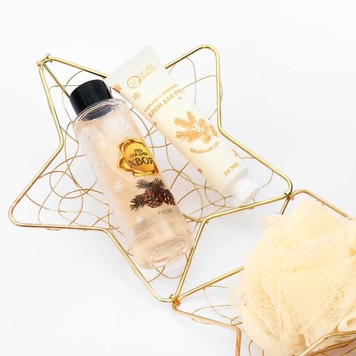 - Гель для душа 100 мл "Хвоя"— его нежная текстура мягко очищает кожу, создавая приятные ощущения свежести и комфорта. Ароматный шлейф геля наполняет душу ощущением праздника, а кожа остаётся увлажнённой и бархатистой на ощупь