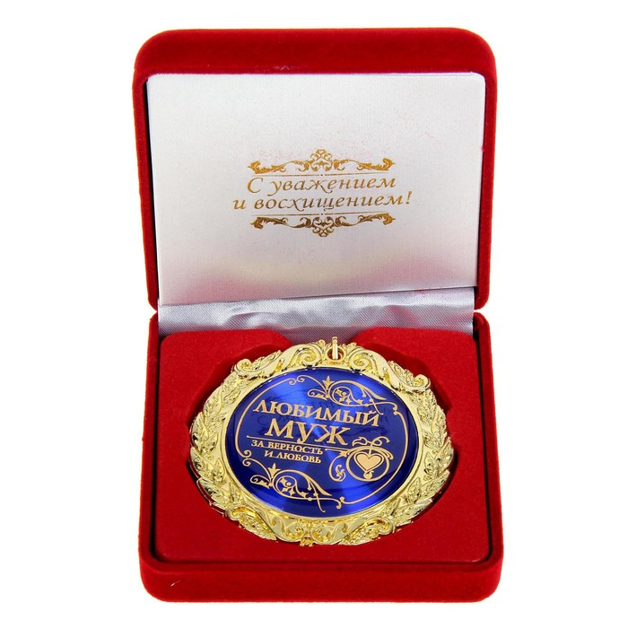 Медаль в бархатной коробке «Любимый муж», d=7 см.