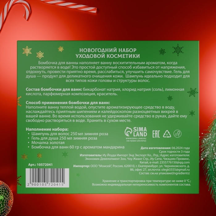 Новогодний подарочный набор косметики «Зимняя вьюга», с ароматом розы и корицы. Зеленая серия