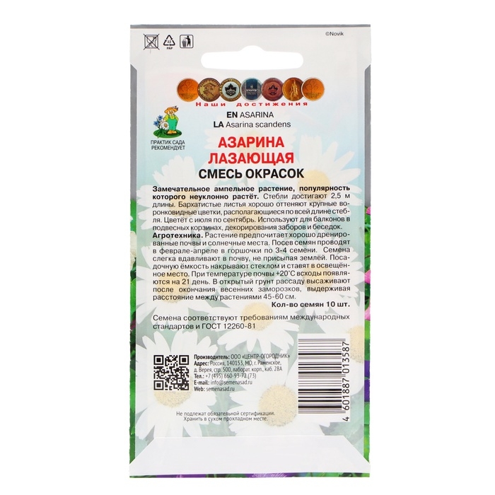 Семена цветов Азарина "лазающая Смесь окрасок" 10 шт