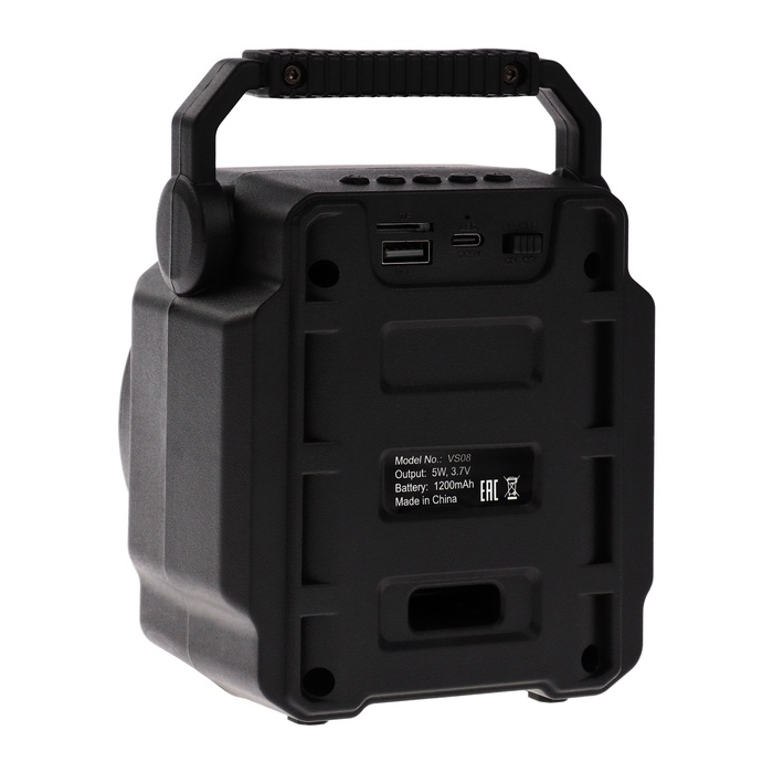 Портативная колонка VS08 LED, 5Вт, 1200мАч, FM, MP3, USB, microSD, TWS черная