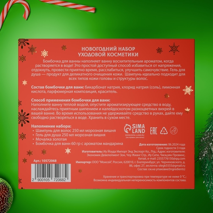 Новогодний подарочный набор косметики «Зимняя сказка», с ароматом вишни и корицы. Красная серия