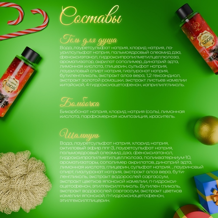 Новогодний набор — это идеальное сочетание продуктов для полноценного ухода за телом, которые дарят ощущение роскоши и заботы. Он идеально подойдёт как подарок на Новый год, который подчеркнёт ваше внимание и любовь к близким.
