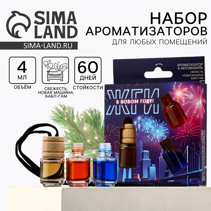 Ароматизаторы для машины новогодние «Жги в Новом году», свежесть, новая машина, бабл-гам, 3 шт