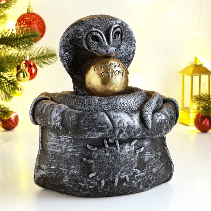 Копилка "Змея в мешке" 21х18х23см, серебро