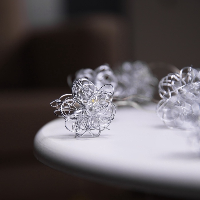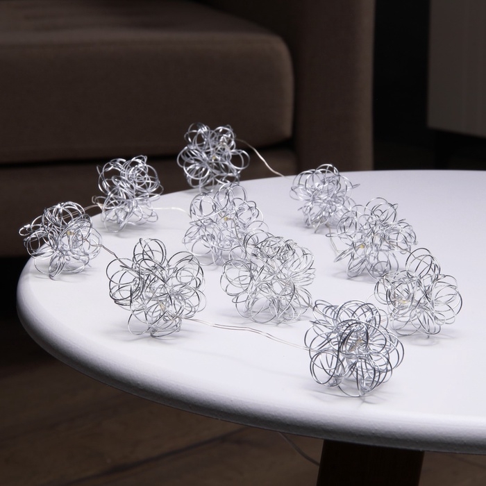 Гирлянда «Нить» роса 5 см, с насадками «Снежки», IP20, серебристая нить, 10 LED, батарейки ААх2 (не в комплекте), свечение тёплое белое