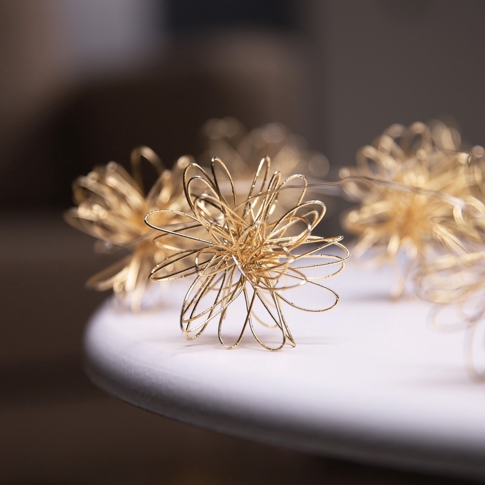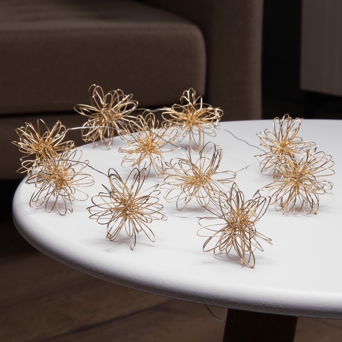 Гирлянда «Нить» роса 5 см, с насадками «Вспышка», IP20, серебристая нить, 10 LED, батарейки ААх2 (не в комплекте), свечение тёплое белое