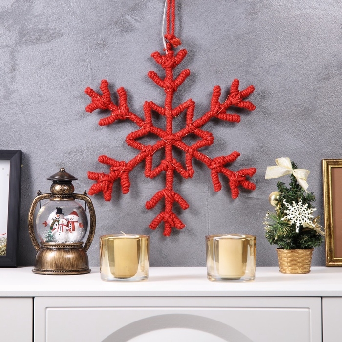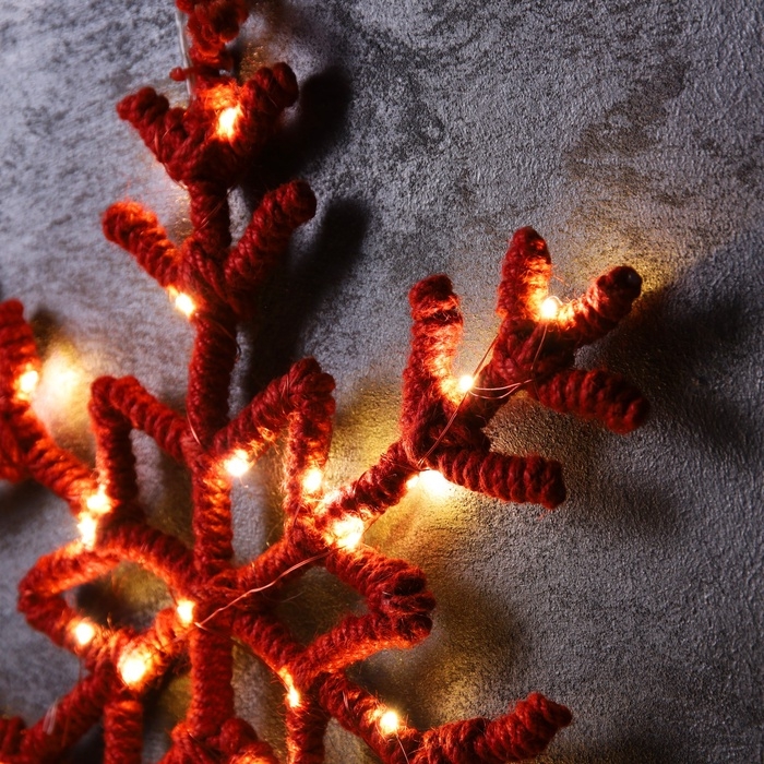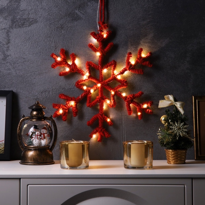 Светодиодная фигура «Снежинка красная» 39 см, 30 LED, батарейки AAx2 (не в комплекте), свечение теплое белое