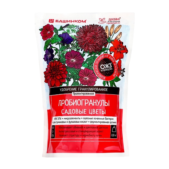 Пробиогранулы "Цветы садовые" (800 г) — это удобрение, предназначенное для поддержки роста и цветения садовых растений. Они содержат живые микроорганизмы, которые улучшают структуру почвы и способствуют лучшему усвоению питательных веществ.