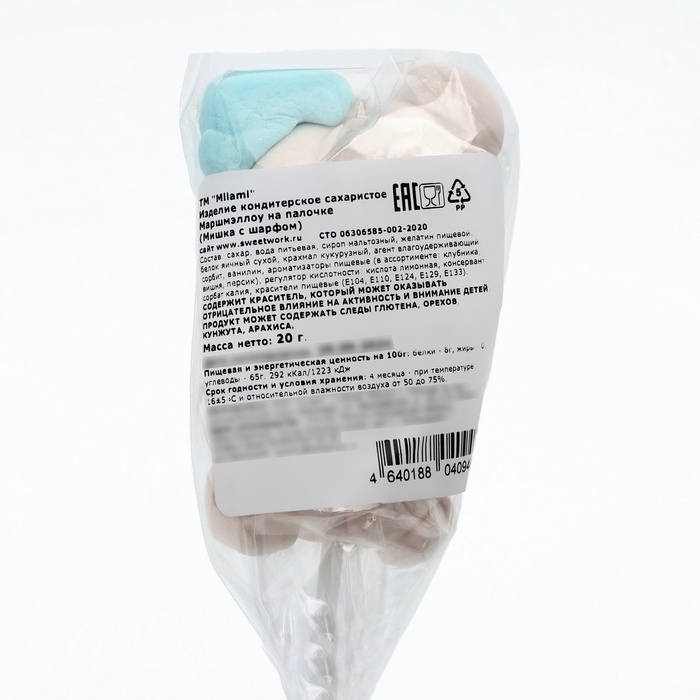 Маршмэллоу на палочке "Мишка с шарфом", 20 г