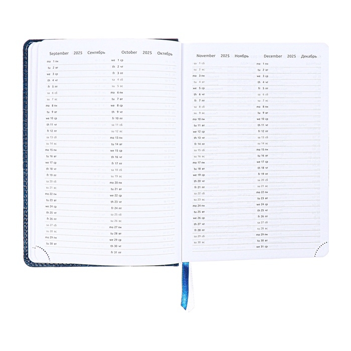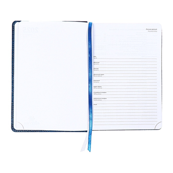 Ежедневник датированный 2025 года, A5 168 листов, Attomex. Croco, твердая обложка кожзам с поролоном, перефото, ляссе, блок 70, синий