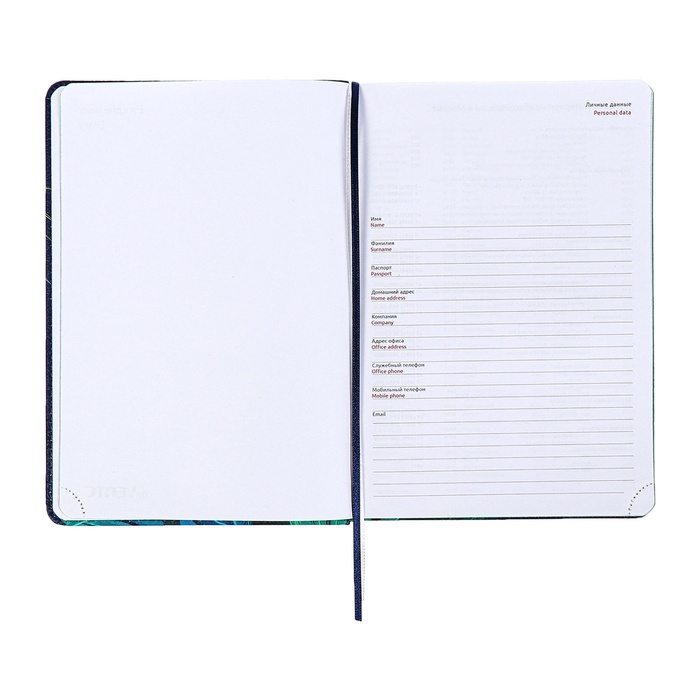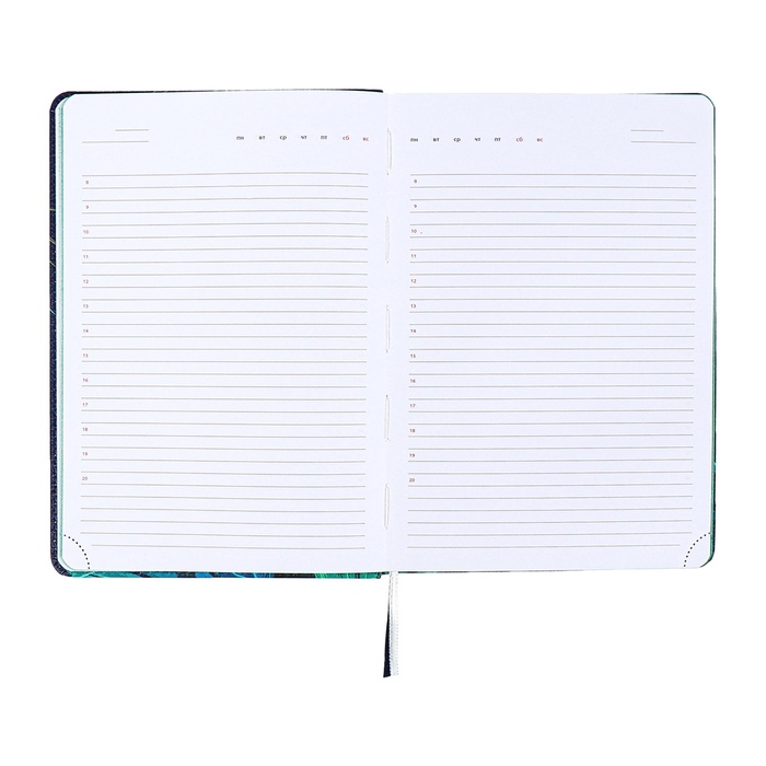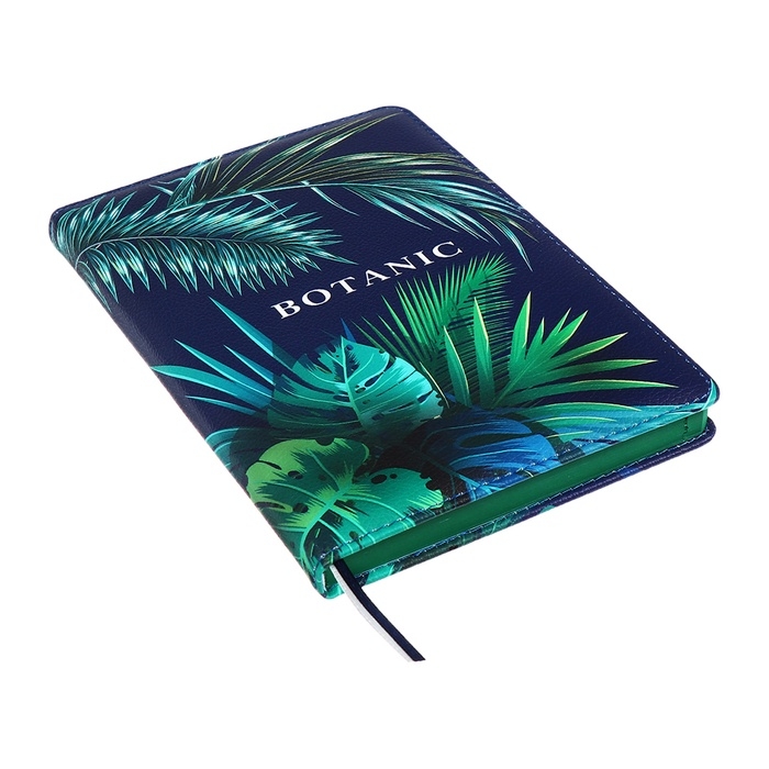 Ежедневник недатированный A5 136 листов кожзам deVENTE. Botanic, твердая обложка с поролоном, перфорация, ляссе, блок 70, синий