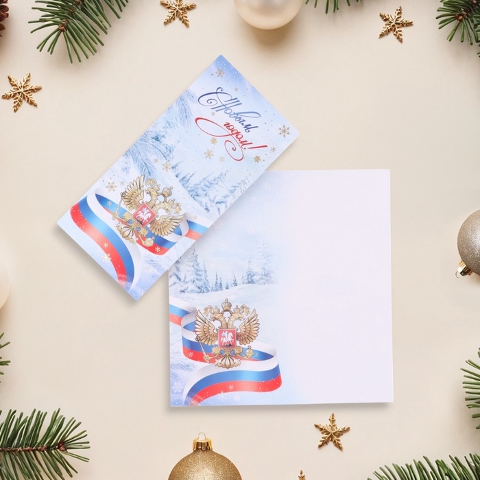 Открытка-евро "С Новым Годом!" тиснение, снег, символика РФ, 19,5 х 10 см