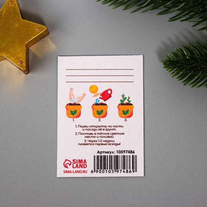 Набор открыток с семенами "Вырасти сам" "С новым годом" 5*7см 3 шт