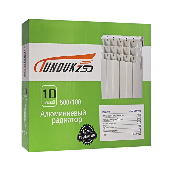 Радиатор алюминиевый TUNDUK 500 x 96 мм, 10 секций