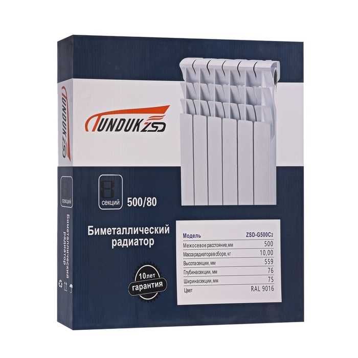 Радиатор биметаллический TUNDUK 500 x 76 мм, 8 секций