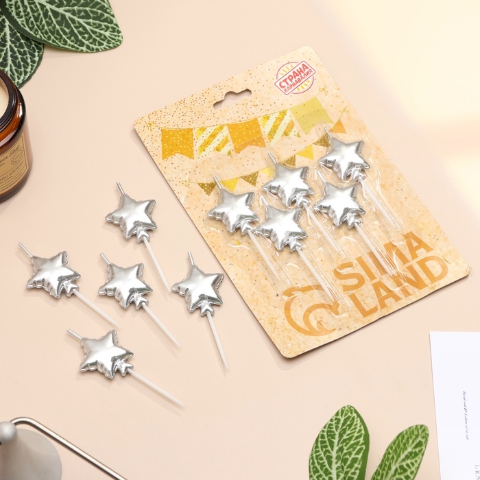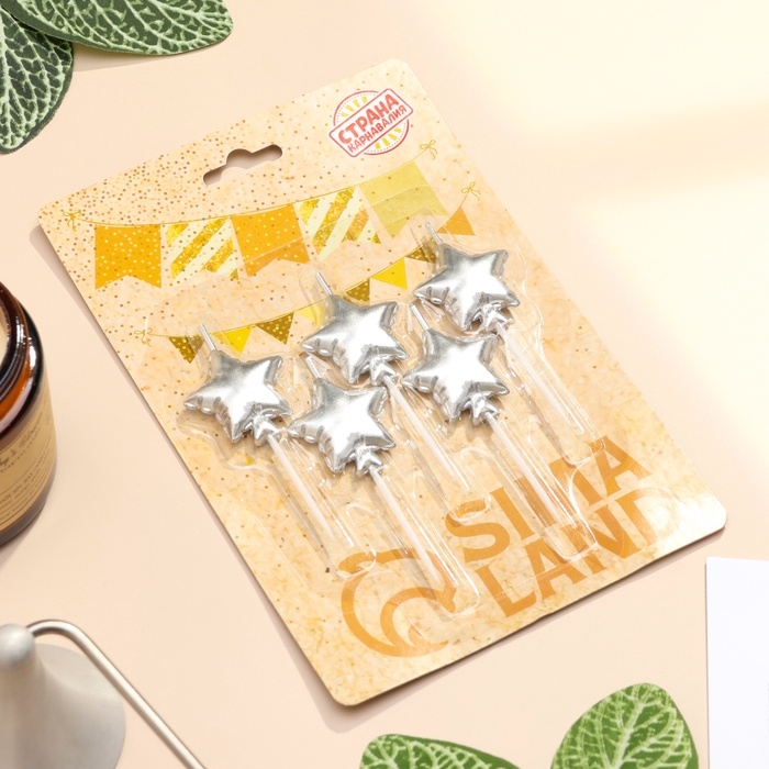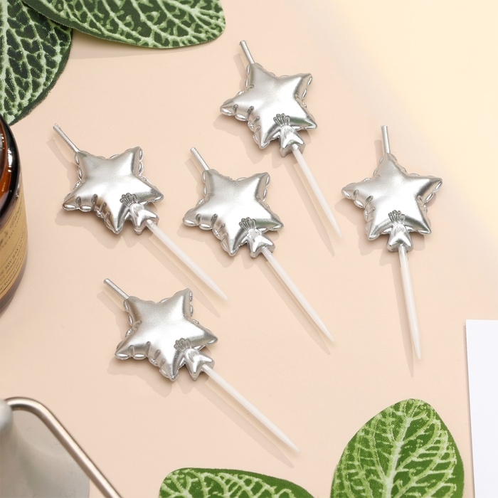 Набор свечей для торта. 5 шт "Воздушный шарик. Звезда". серебряные