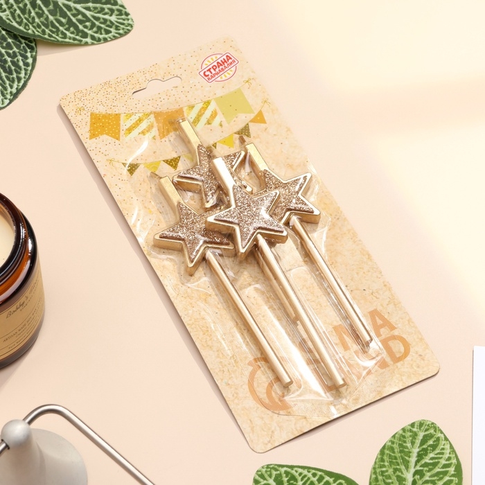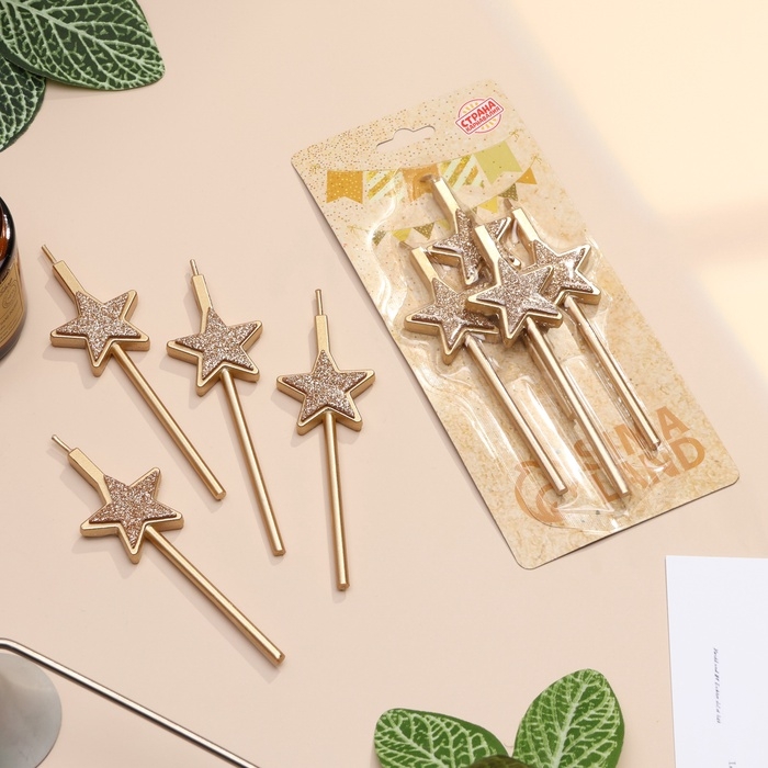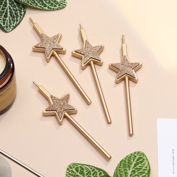 Набор свечей для торта, 4 шт "Блестящие звезды", шампань