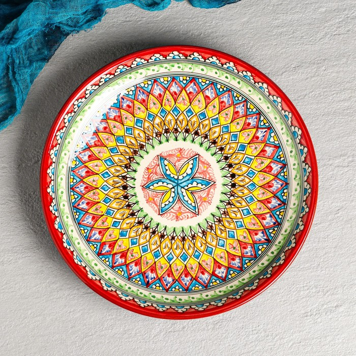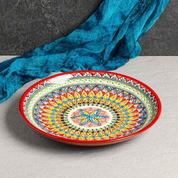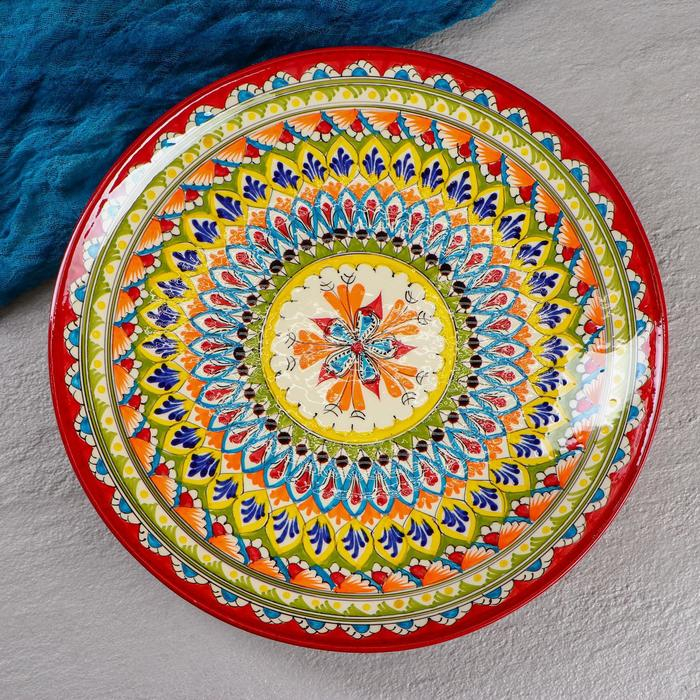 Ляган Риштанская Керамика "Узоры", 32 см, красный