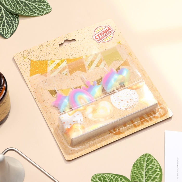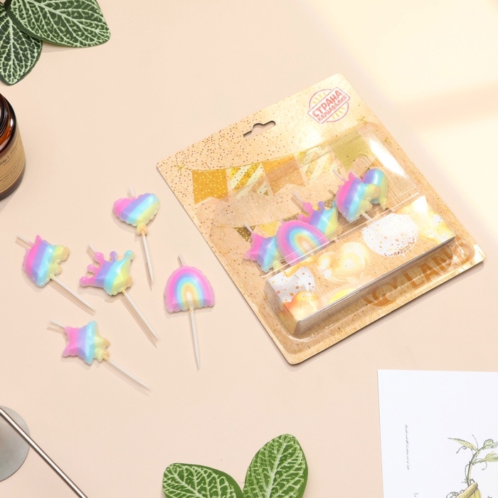 Набор свечей для торта, 5 шт "Детская радужная вечеринка", разноцветные
