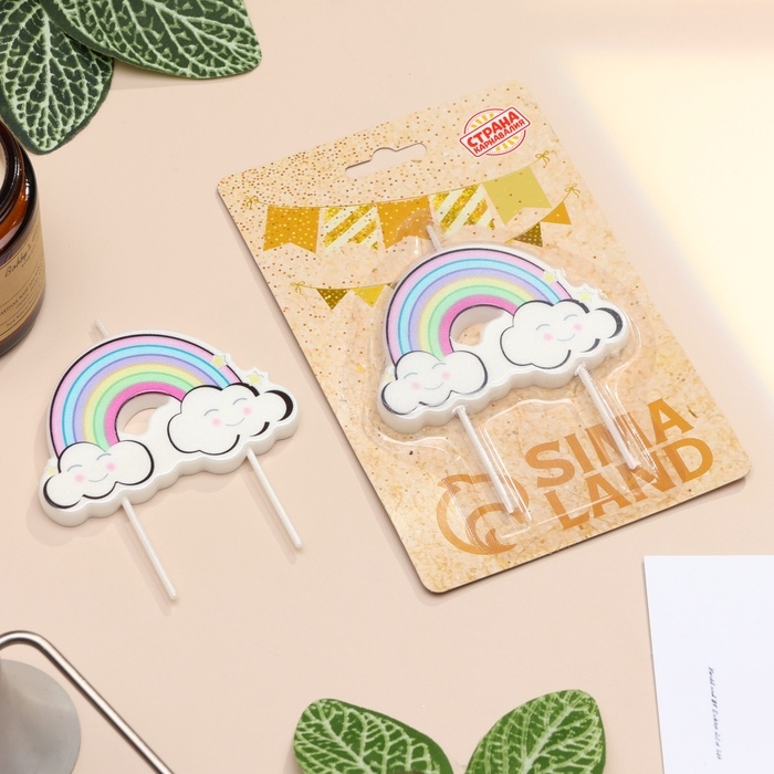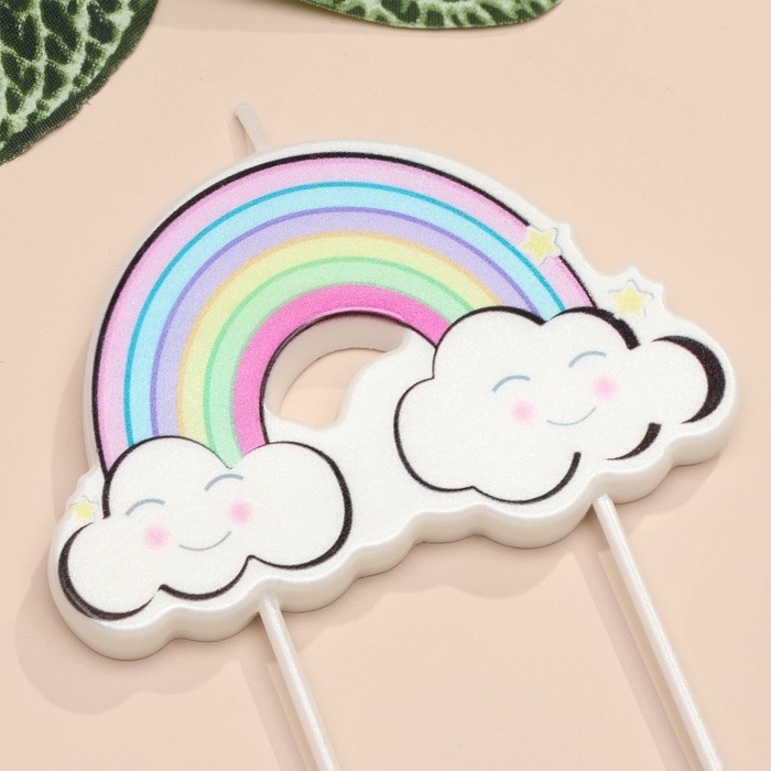 Свеча для торта "Радужные облака", разноцветная