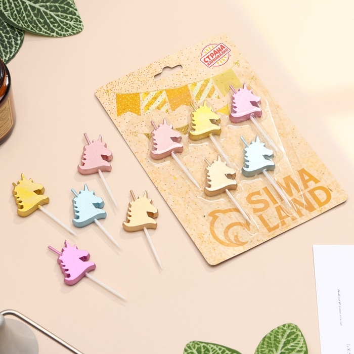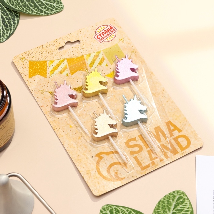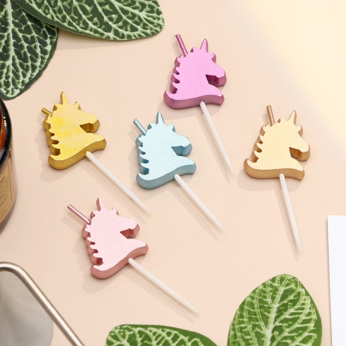Набор свечей для торта, 5 шт "Блестящие единороги", разноцветные