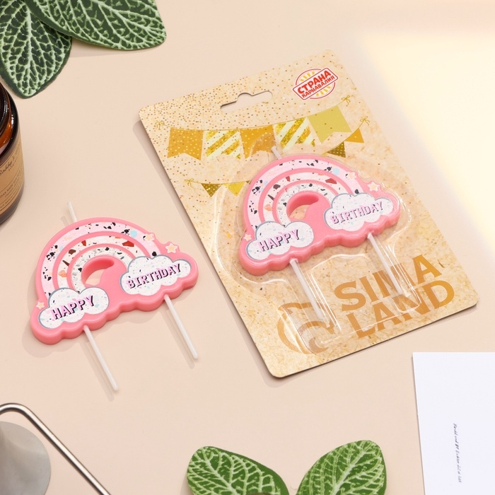 Свеча для торта "Воздушная радуга", розовая