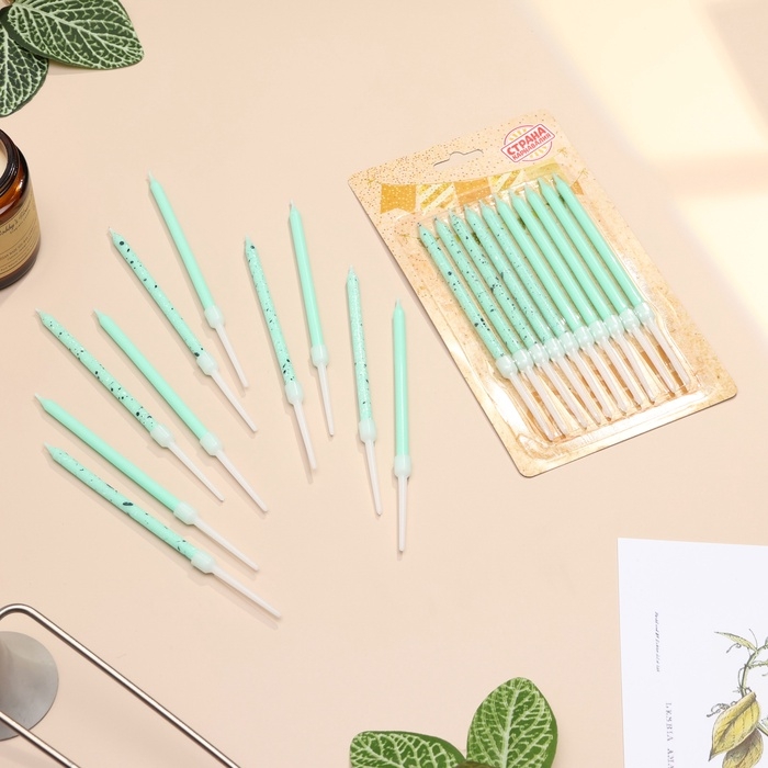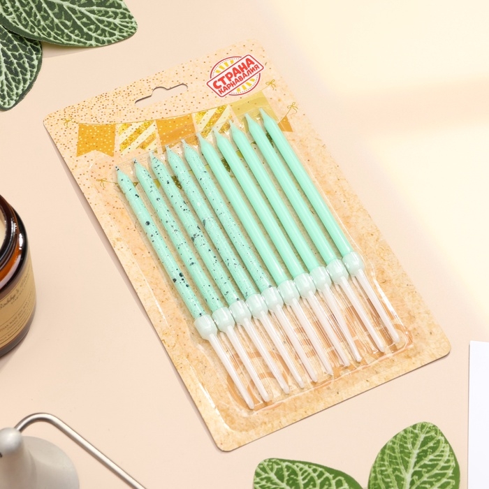 Свечи для торта "Блестящая вечеринка", 10 шт, голубые
