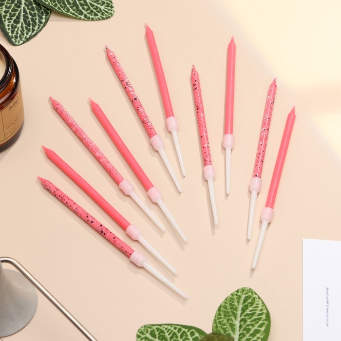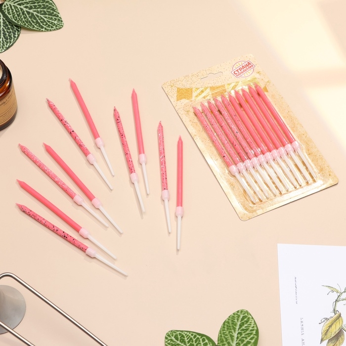 Свечи для торта "Блестящая вечеринка", 10 шт, розовые