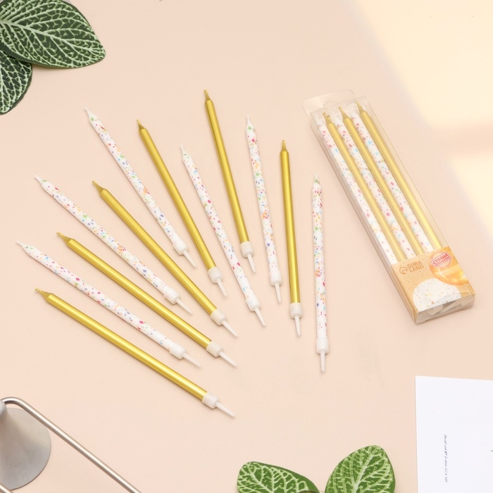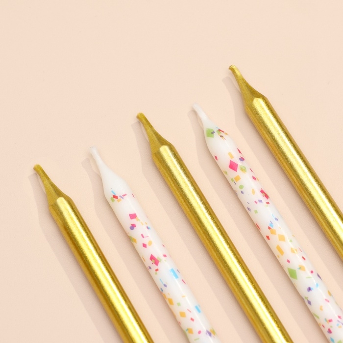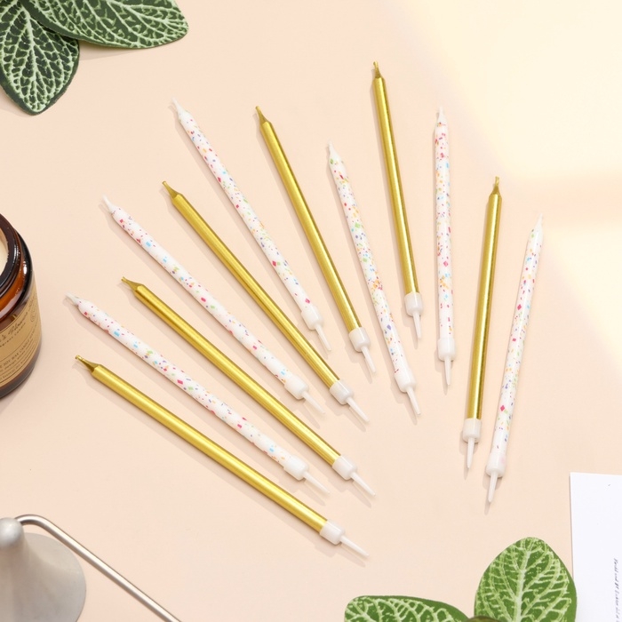 Свечи для торта "Конфетти", 12 шт, золотые и белые