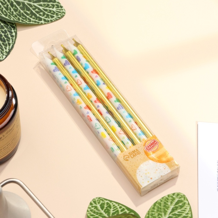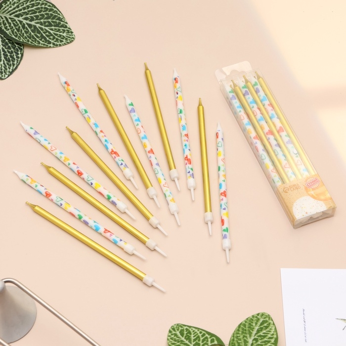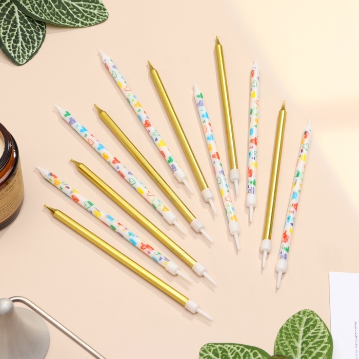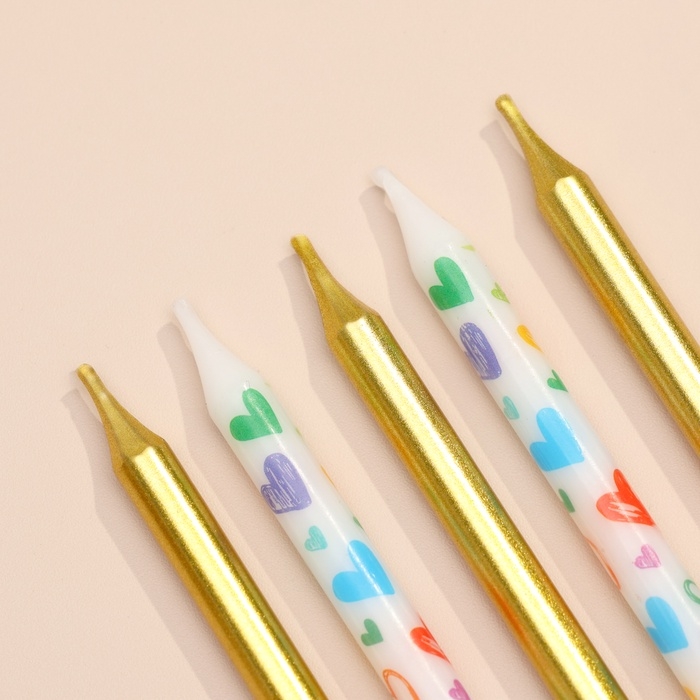 Свечи для торта "Сердца", 12 шт, золотые и белые