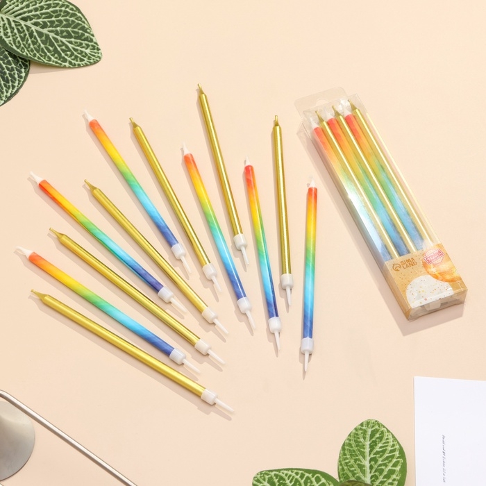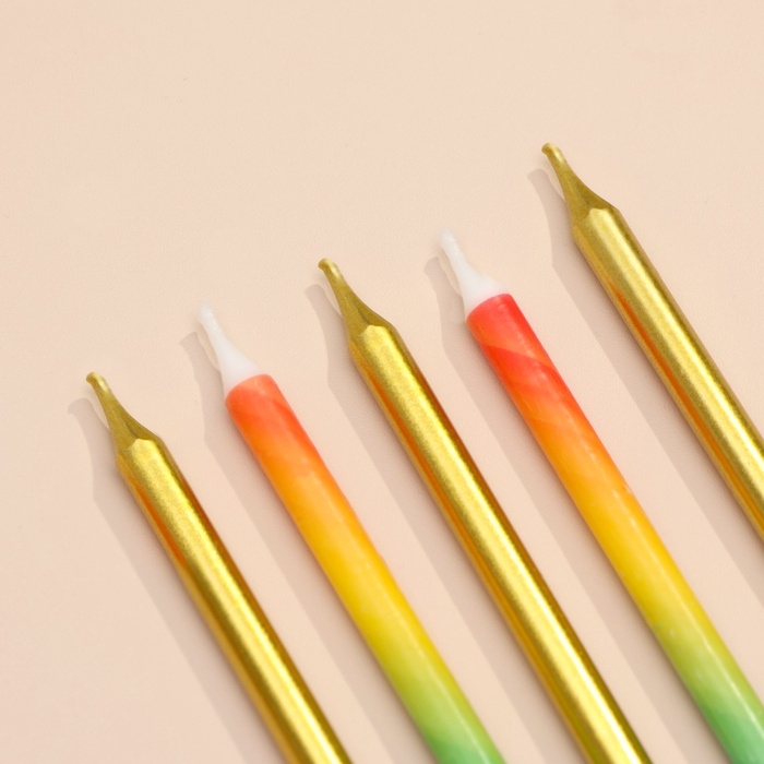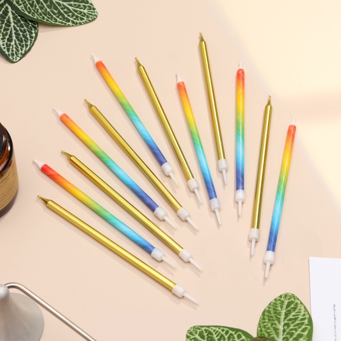 Свечи для торта "Радуга", 12 шт, золото и разноцветный