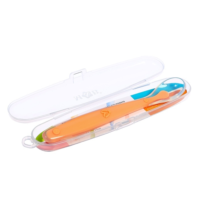 Ложка детская, для первого прикорма, в контейнере, оранжевая