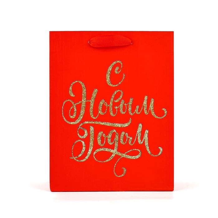 Пакет подарочный новогодний ламинированный «С Новым годом», глиттер, MS 18 х 23 х 10 см