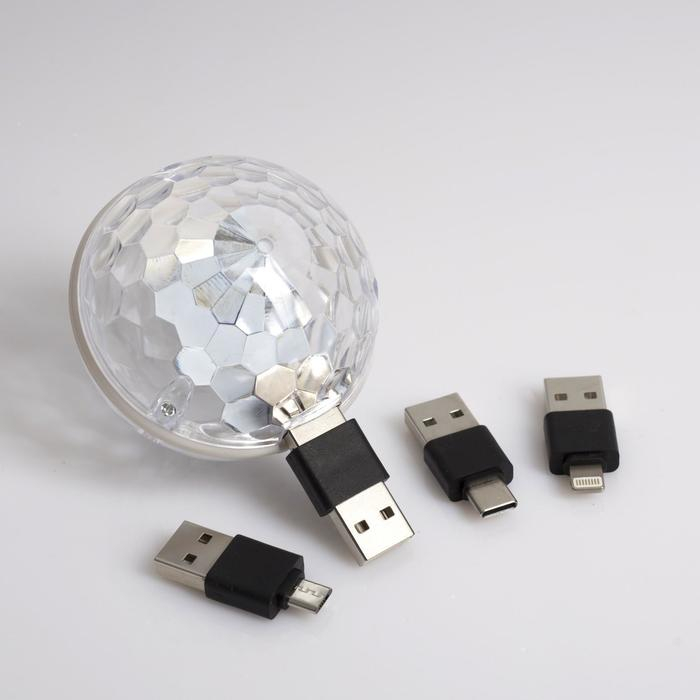 Световой прибор «Двойной диско-шар» 7 см, 4 коннектора, свечение RGB, 5 В