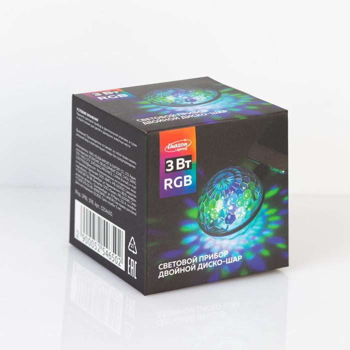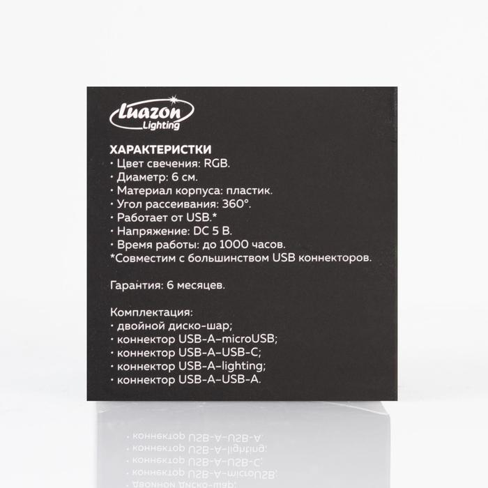 Световой прибор «Двойной диско-шар» 7 см, свечение RGB, 5 В