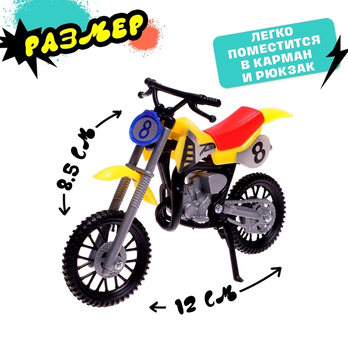 Игрушечный Фингер байк — это идеальный выбор для любителей фингер-спорта, который позволит вашему ребёнку развить ловкость и координацию. Эта миниатюрная модель мотоцикла прекрасно подходит для игры и выполнения различных трюков прямо на столе или специальной площадке. Благодаря своим компактным размерам, Фингер байк легко помещается в руках, что делает его доступным для детей любого возраста.