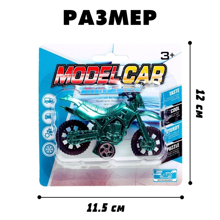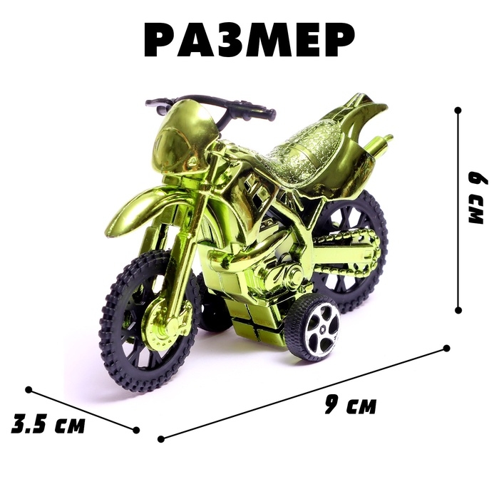 - Размеры мотоцикла: 9 × 3,5 × 6 см.