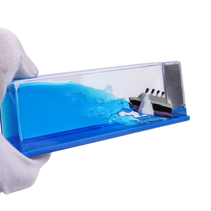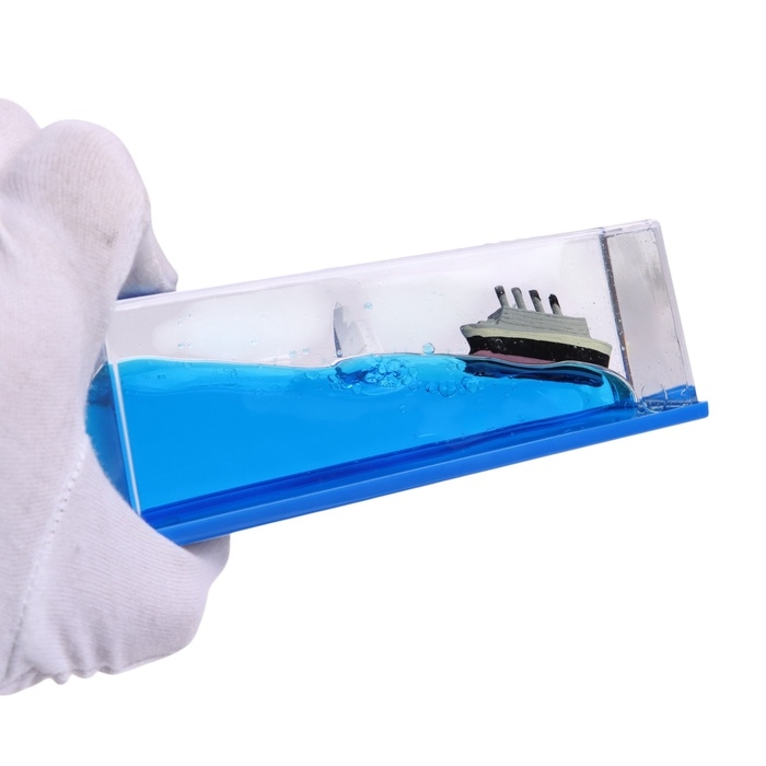 Плавающий корабль легко крепится на панель при помощи клейкой ленты.